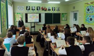29 октября в нашей школе состоялась профориентационная встреча учащихся старших классов с главным государственным санитарным врачом Слонимского района Дервоедовым Дмитрием Григорьевичем.