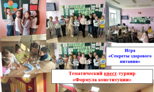 В рамках шестого школьного дня для учащихся 3-4 классов прошла конкурсная программа "Секреты долголетия"; для учащихся 1-2 классов игра " Секреты здорового питания"; для учащихся 7-8 классов тематический квест-турнир "Формула Конституции"