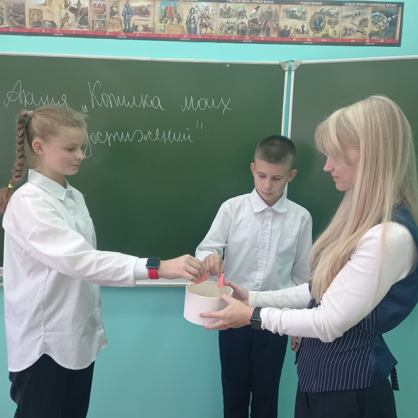 В понедельник учащиеся 6 «Б» класса приняли участие в акции «Копилка моих достижений». Учащиеся с удовольствием вспомнили и закрепили свои достижения, после чего была создана «копилка». Целью такой акции является: формирование ценностного отношения к себе и своим достижениям