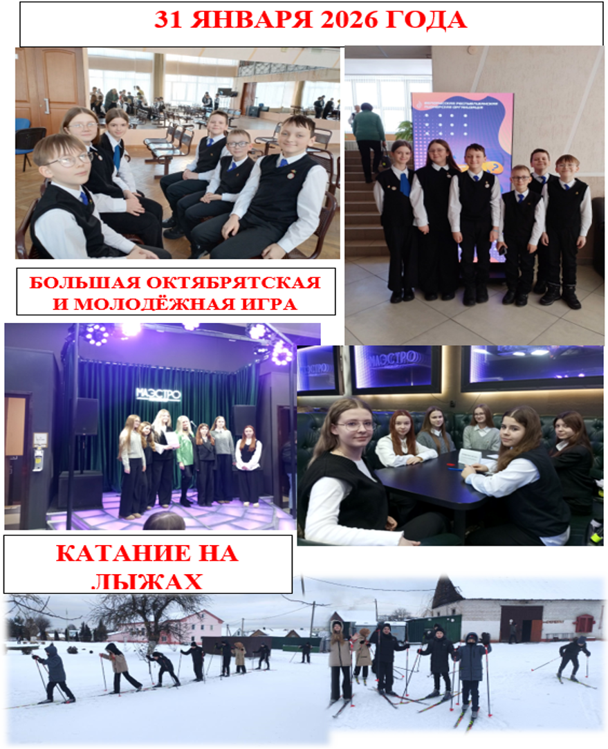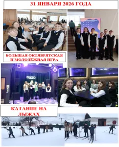 31 января в рамках шестого школьного дня октябрята пионерской дружины имени Ю.Гагарина и члены первичной организации ОО «БРСМ» приняли достойное участие в областном этапе республиканской интеллектуально-развлекательной игре «Большая октябрятская игра/Большая молодежная игра». А для учащихся 5-11 классов прошли катания на лыжах «Лыжные гонки»