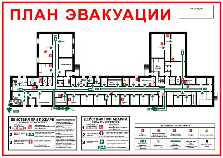 План эвакуации. Это ваш путеводитель в экстренной ситуации. План эвакуации – это графическая схема, которая показывает маршруты движения к безопасным выходам. Обращайте внимание на размещение эвакуационных выходов, пожарных щитов, кнопок пожарной сигнализации. Изучайте план ДО того, как окажетесь в опасности!