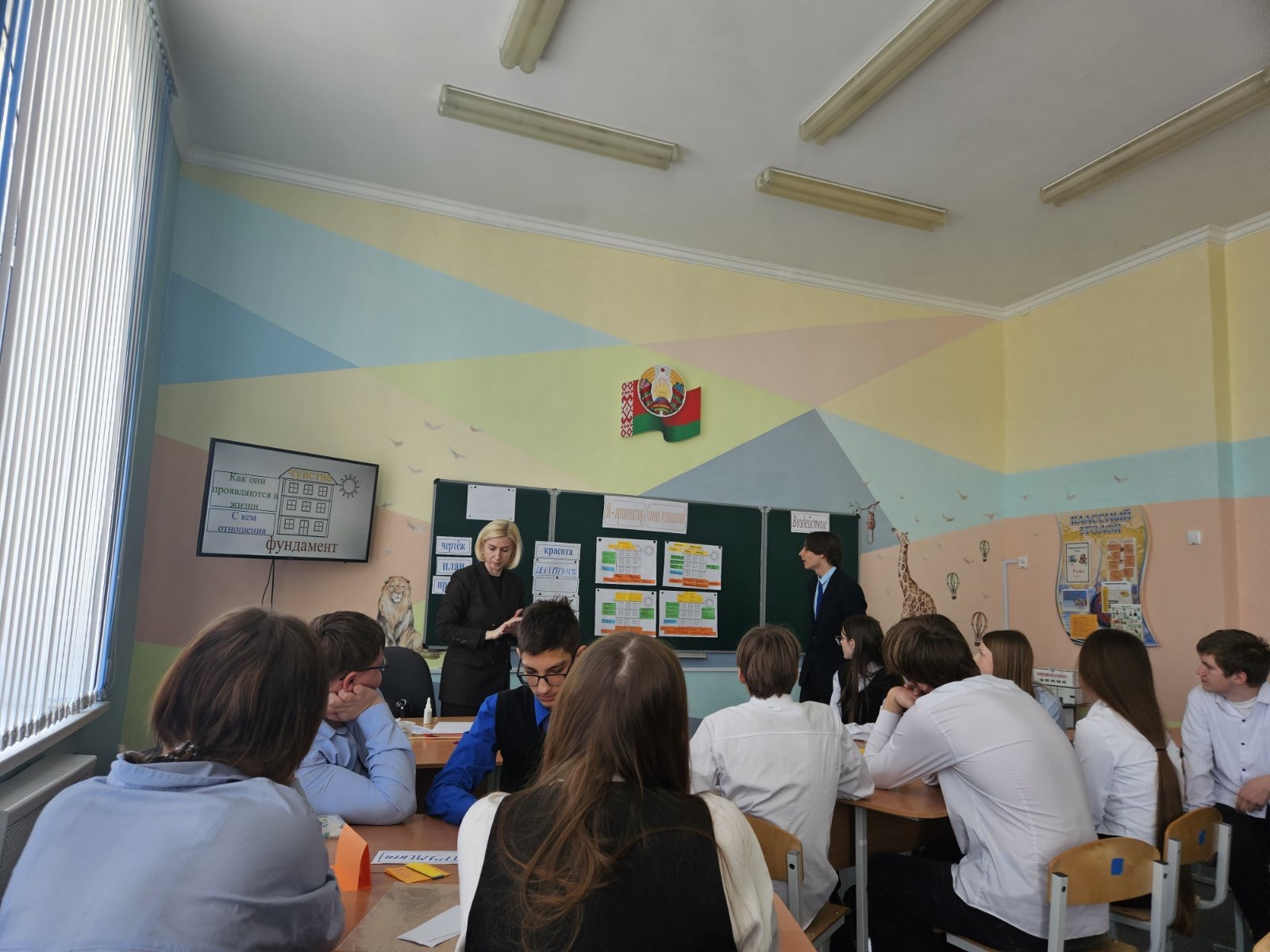 В 9 б классе прошёл классный час «Я – архитектор своих отношений». В позитивной атмосфере при проектировании здания «Идеальные для меня отношения» подростки определили личные «ценностные кирпичики» – основание для любых отношений. Ребята учились определять, какие из свойственных им отношений и жизненных ценностей сформированы семьей, друзьями, школой, интернетом.