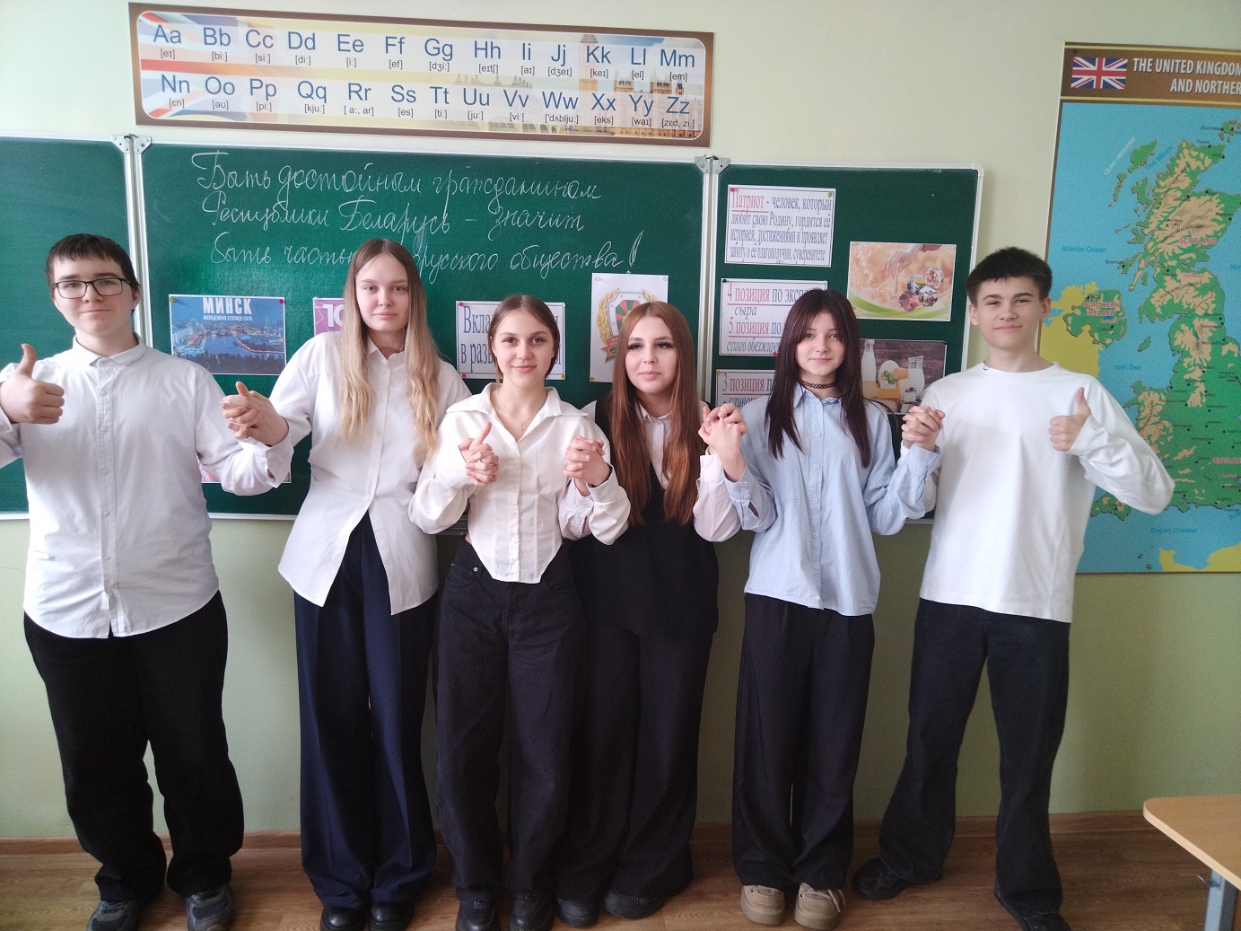 26 февраля в рамках образовательного проекта ШАГ ребята 9"В" класса обсудили тему" Быть достойным гражданином Республики Беларусь - значит быть частью белорусского общества". В фокус обсуждения был патриотизм. Ребята обсуждали значение патриотизма, говорили о том, как он проявляется в каждом из нас. Акцент, в том числе, был сделан на роли молодёжи в развитии Беларуси. Ребята пришли к выводу, что быть достойным гражданином и патриотом - значит быть не равнодушным, ответственным, трудиться на благо своей страны, с достоинством нести высокое звание гражданина Республики Беларусь