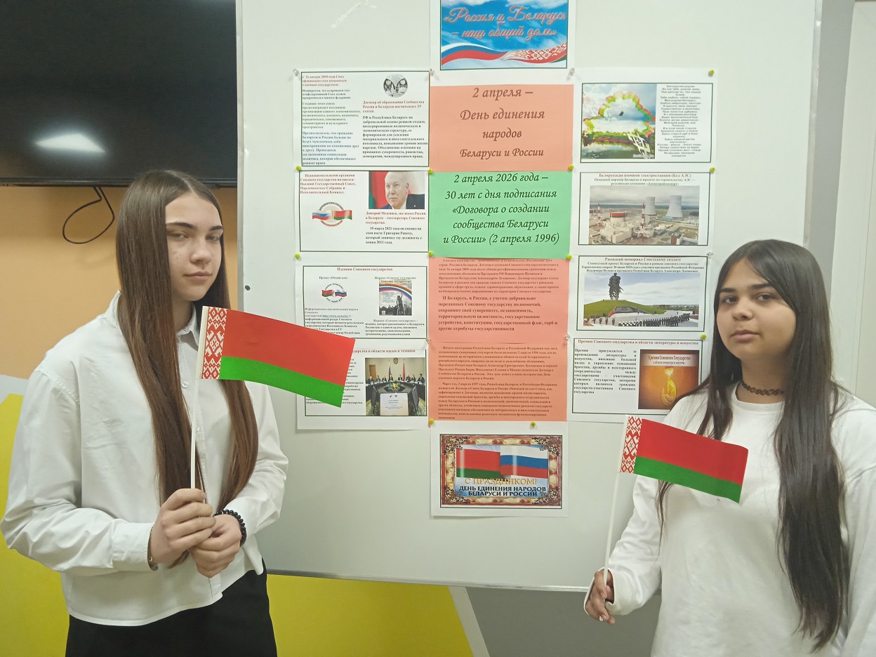 «Россия и Беларусь: наш общий дом»: так называется информационный стенд, посвященный этой дате. Информация на нем рассказывает учащимся школы об этапах создания Союзного государства, принципах организации единого экономического, политического, военного, валютного, юридического, таможенного, гуманитарного и культурного пространства