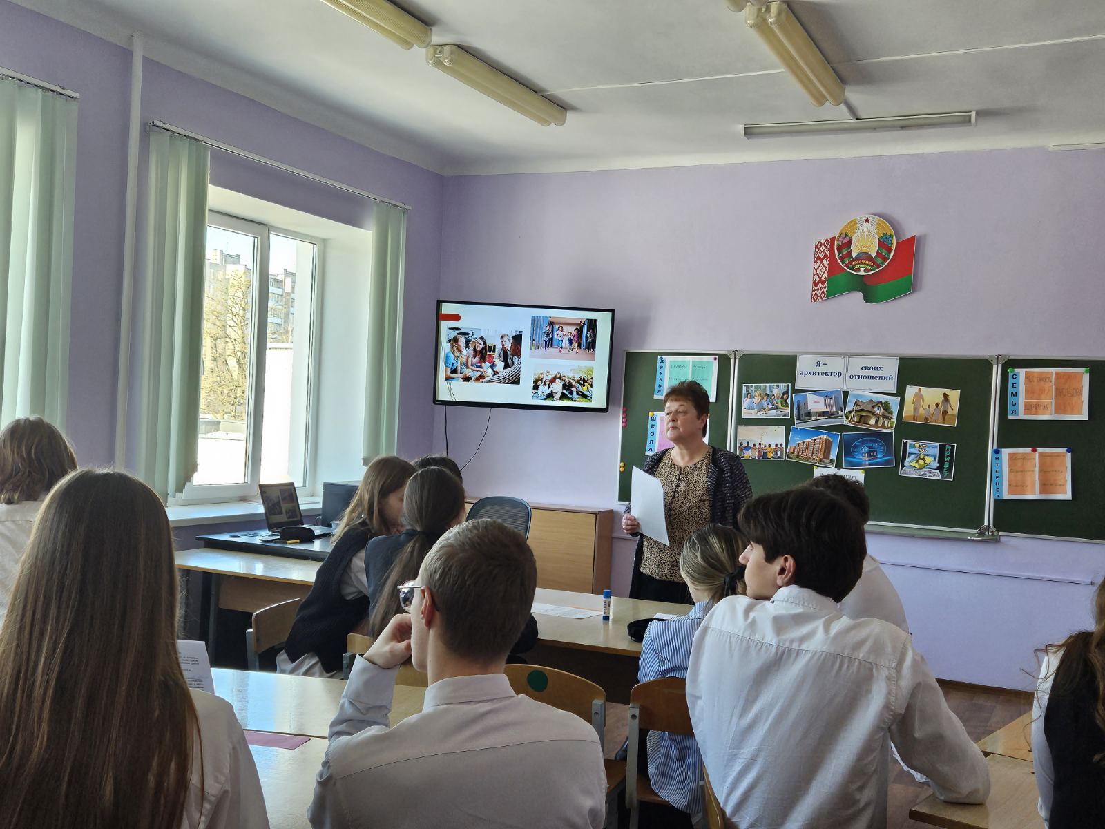 26 февраля в рамках образовательного проекта ШАГ ребята 9"В" класса обсудили тему" Быть достойным гражданином Республики Беларусь - значит быть частью белорусского общества". В фокус обсуждения был патриотизм. Ребята обсуждали значение патриотизма, говорили о том, как он проявляется в каждом из нас. Акцент, в том числе, был сделан на роли молодёжи в развитии Беларуси.