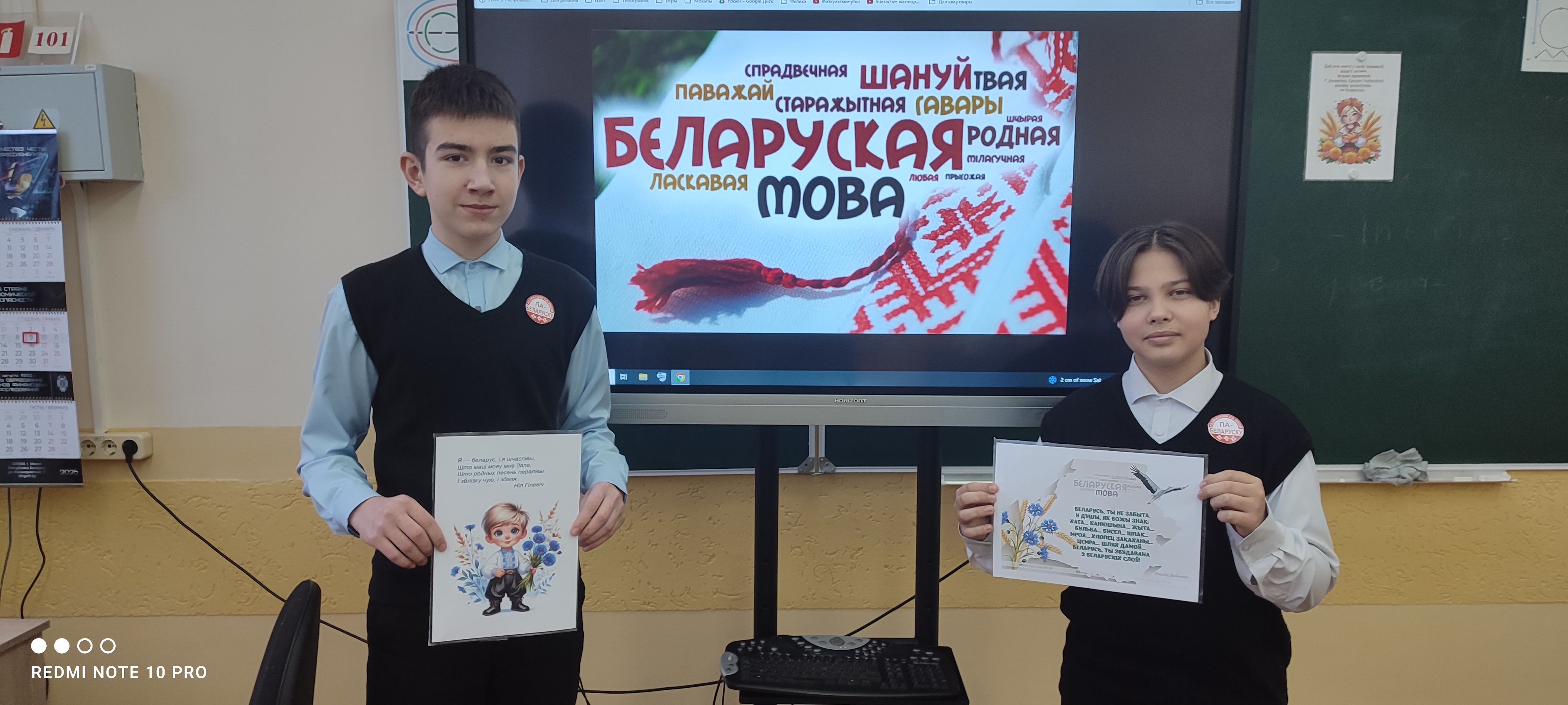 Беларускай мове пятая школа гаворыць: "Добры дзень, родная мова.Вітаем цябе у нашых сценах у калядную пятніцу!!!"  А зранку адбылася акцыя "Гаворым па- беларуску". Паэтычныя хвілінкі гучалі на ўроках літаратуры, на перапынках вучні падпявалі беларускім артыстам на роднай мове...На душы настаўнікаў і вучняў засвяцілася святочная моўная зорачка, якая, спадзяемся, будзе саграваць сцены школы кожную пятніцу