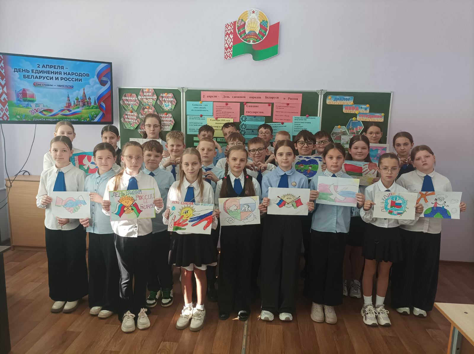 2 апреля в 4 «Б» классе прошёл Единый урок, посвящённый Дню единения народов Беларуси и России. Ребята говорили об истории Союзного государства, созданном на основе культурно – исторической связи Беларуси и России, о ценности дружбы и сотрудничества между народами, о традициях.  У наших братских народов одни духовные ценности, одни жизненные ориентиры и общее стремление к миру и процветанию. В нашей дружбе великая сила!