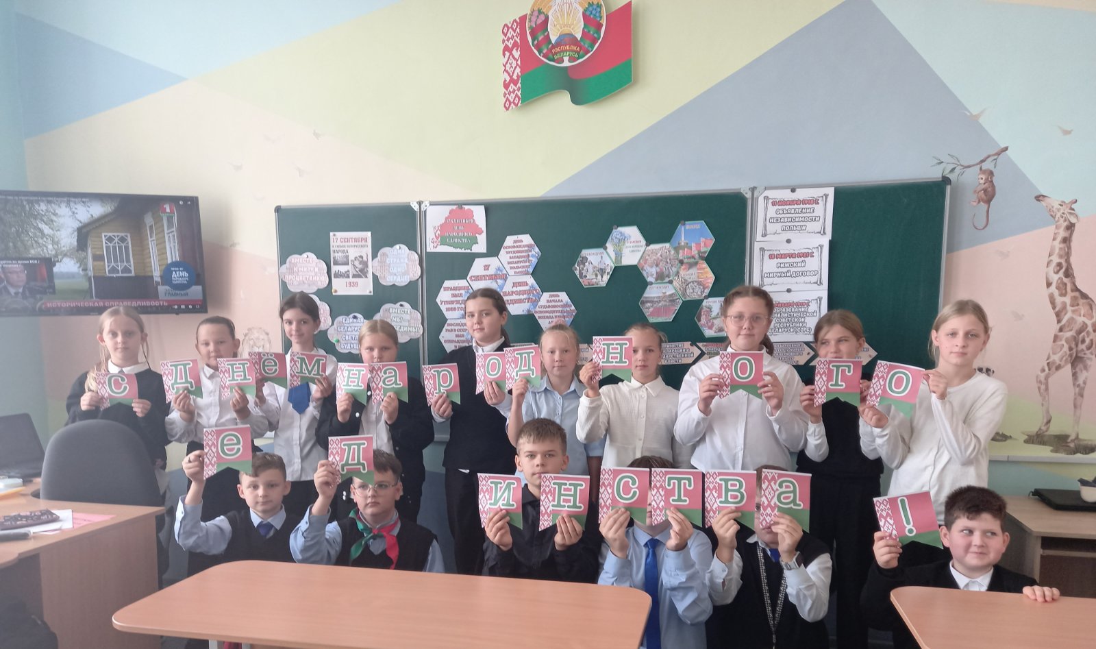 17 сентября в 5 «В» классе прошёл урок, посвященный Дню народного единства. День народного единства - это не просто очередной день в календаре . Это символ , который напоминает белорусам об их общих корнях, истории и будущем.