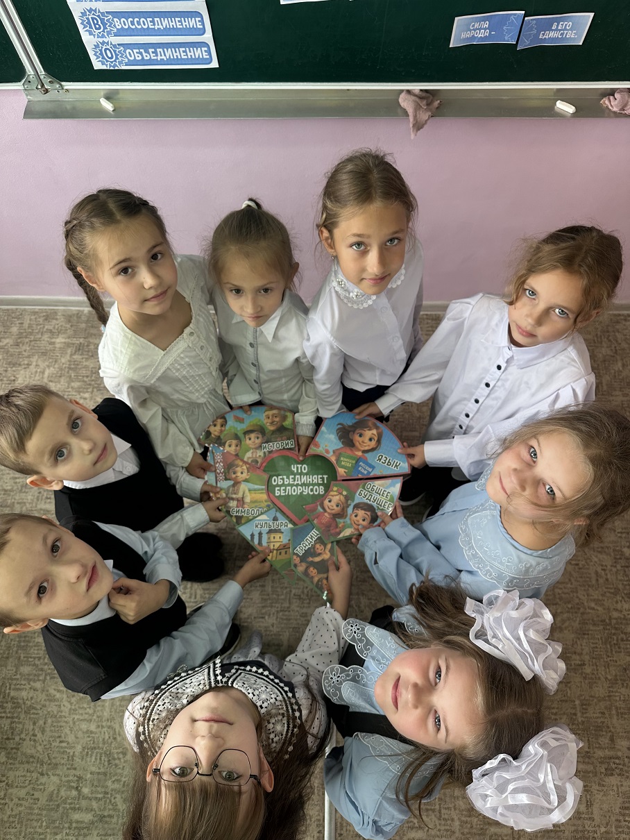 Сегодня во 2 «В» классе состоялся единый урок, посвящённый Дню народного единства. Мы вместе обсудили, что День народного единства отмечается 17 сентября и посвящён важности дружбы, взаимопомощи и сплочённости в народе. Дети активно участвовали в обсуждении, делились примерами, когда важно быть дружными и помогать друг другу. В завершение урока ребята называли качества белорусов и нарисовали рисунки на тему единства и дружбы, что помогло им лучше понять смысл праздника