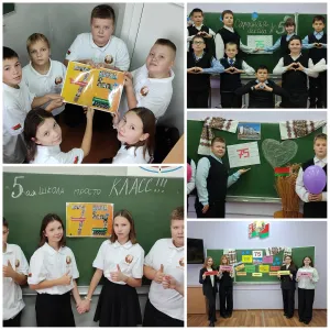 Юбілейны дзень роднай школы па- свойму святкавалі вучні на ўроках беларускай мовы: называлі граматычныя катэгорыі, якія суадносіліся да лічбаў 7 і 5 ( часціны мовы і члены сказа), асацыяцыі і эпітэты слова " школа", складалі воблака слоў. Свае віншаванне перадалі і вучні спартыўнага класа. Усе , веру, згодны, што 5 школа проста клас!!! Сам святам, РОДНАЯ ШКОЛА!!!